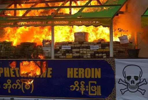The report also called Laos one of the countries most impacted by methamphetamine trafficked out of Myanmar. One of Asia's biggest-ever drug busts was made in Laos last October, with police there seizing more than 55.6 million methamphetamine pills in a single raid. They also seized about 1,500 kilograms (3,300 pounds) of crystal methamphetamine, state media reported.