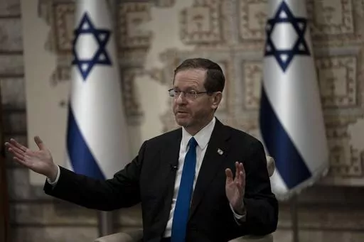 In an interview with The Associated Press on Thursday, Isaac Herzog said it is not the time to be talking about establishing an independent Palestinian state when the country's pain from Hamas' Oct. 7 attack is still fresh.