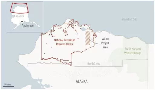 The Willow project is in the northeast portion of the National Petroleum Reserve-Alaska, where there has been debate over how much of the region should be available to oil and gas development.