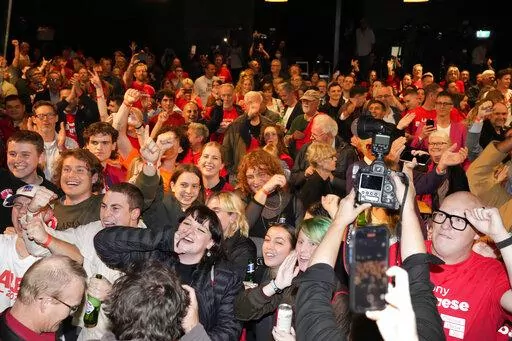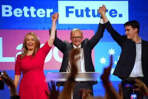 CANBERRA, Australia (AP) — Australia’s center-left opposition party toppled the conservative government after almost a decade in power, and Prime Minister-elect Anthony Albanese in his Saturday election victory speech promised sharper reductions in greenhouse gas emissions while he faces an early foreign policy test.