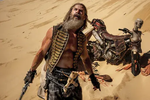 Hemsworth may play a maniac warlord named Dementus who rides a Roman chariot across the wasteland of George Miller's “Furiosa,” but he’s also a big softy who carries his childhood stuffy. Strapped to Dementus is a teddy bear, an artifact of a childhood that, like Furiosa’s, is marked by grief. — J.C.