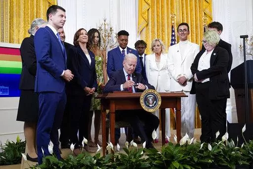 WASHINGTON (AP) — President Joe Biden issued an executive order Wednesday to stymie what what his administration calls discriminatory legislative attacks on the LGBTQ community by Republican-controlled states, declaring before a signing ceremony packed with activists, “pride is back at the White House.”