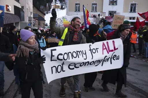 As in past years, protesters calling for more economic equality, taxing the rich and pressing other demands took to the streets. Some blocked roads to Davos, snarling traffic in places and delaying trips for some attendees to the event, which runs through Friday.