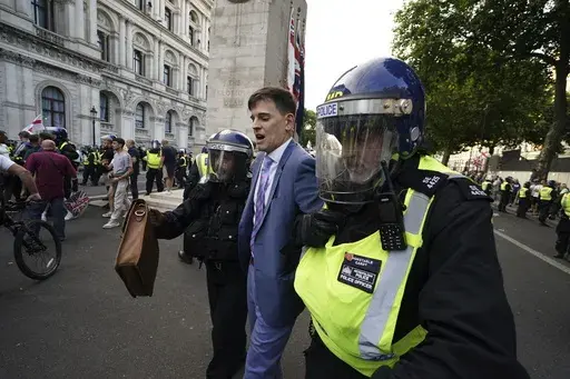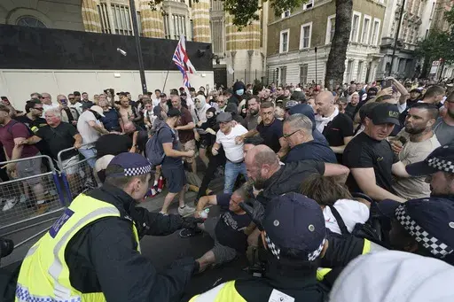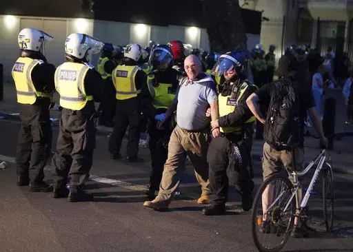 A few hundred protesters hurled beer cans and flares near British Prime Minister Keir Starmer’s residence in Downing Street in central London on Wednesday evening. More than 100 people were arrested for offenses including violent disorder and assault on an emergency worker, London's Metropolitan Police force said.