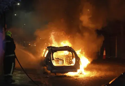 On Tuesday night a crowd of several hundred people hurled bricks and bottles at riot police in Southport, set garbage bins and vehicles on fire and looted a store, hours after a peaceful vigil for the girls, aged 6, 7 and 9, were killed. More than 50 officers were injured, including more than two dozen who were taken to hospitals, officials said.