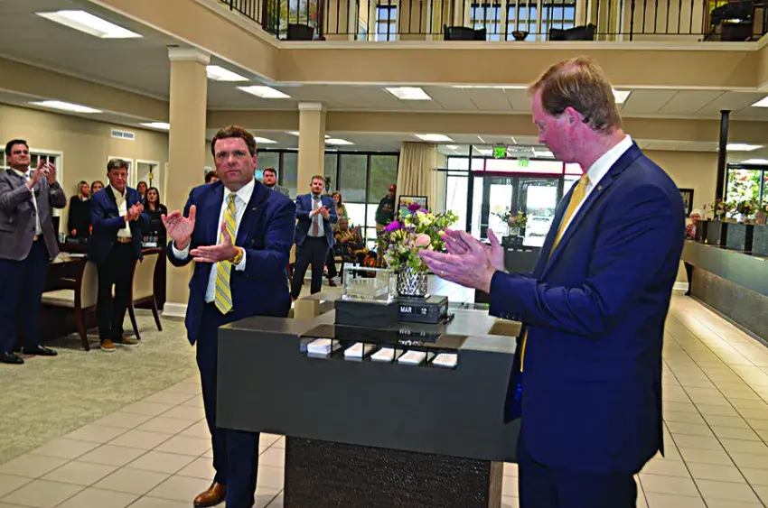 Community Bank in Forest celebrated 50 years at their current location last week with a reception for members of the community as well as former and current employess. Lee McCarty, President Forest/Raleigh Division, welcomed attendees before comments by Justin Martin, President and CEO of Community Bank.
