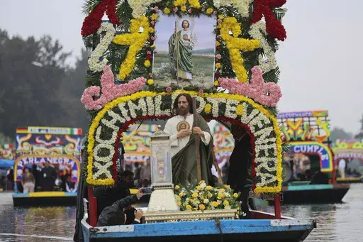 Instead of tourists and locals hanging out with friends, the brightly painted boats known as “trajineras” were filled with Catholics honoring a relic of St. Jude Thaddeus, one of Jesus’ 12 apostles and patron saint of impossible causes.