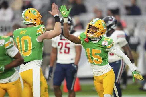 Tez Johnson, Oregon (Fiesta): Johnson caught 11 passes for 172 yards and a touchdown as No. 8 Oregon (No. 8 CFP) trounced No. 18 Liberty (No. 23 CFP) 45-6.