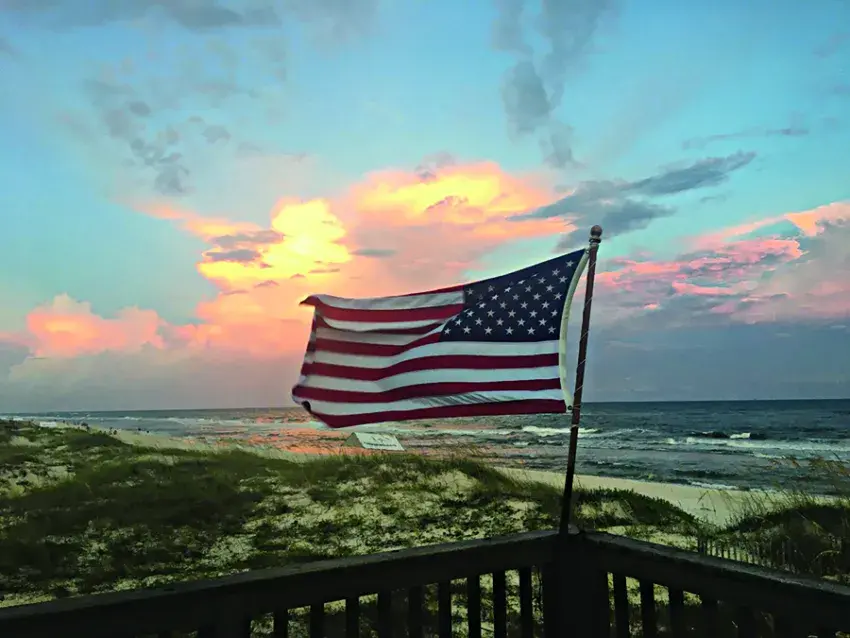 Saturday we departed for the beach and on Sunday we woke up in the perfect little beach house right on the dunes overlooking the Gulf of Mexico. It is much less than 266 steps from our door to the water’s edge. At this writing the sky is clear blue, a Gulf breeze has my flags gently flying on their poles. Waves are crashing onto the sand and the sound is very pleasing to my ears.