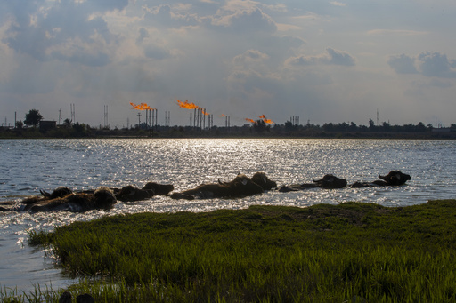 NAHRAN OMAR, Iraq (AP) — The oil is pumped 24 hours a day several meters from Raghed Jasim’s home in Iraq’s crude-rich southern heartland. Gas flares from the field light the night sky bright orange, spewing acrid smoke; when the wind picks up, the 40-year old’s clothes are coated black.