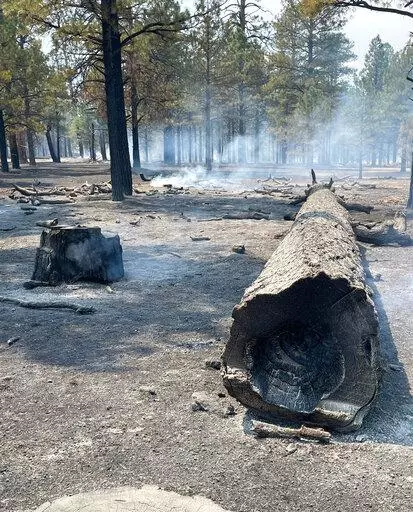 FLAGSTAFF, Ariz. (AP) — Firefighters fanned out across blackened landscape in Arizona’s high country, digging into the ground to put out smoldering tree stumps and roots as helicopters buzzed overhead with buckets of water to drop on a massive blaze.