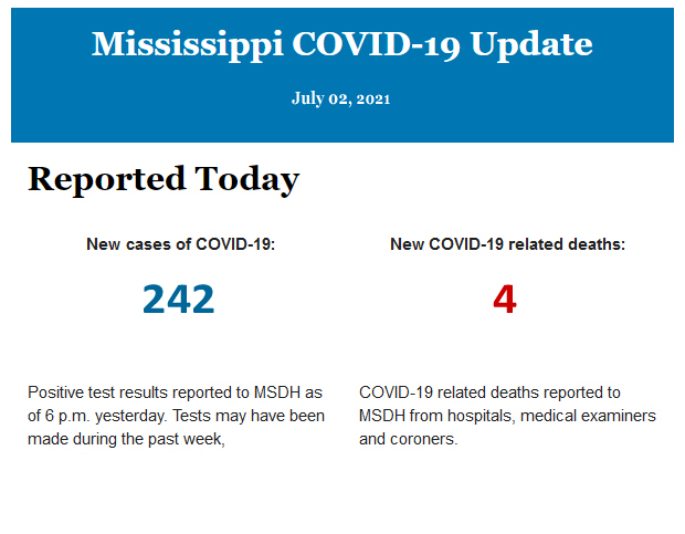 Listed below is the daily COVID-19 update for the state of Mississippi.