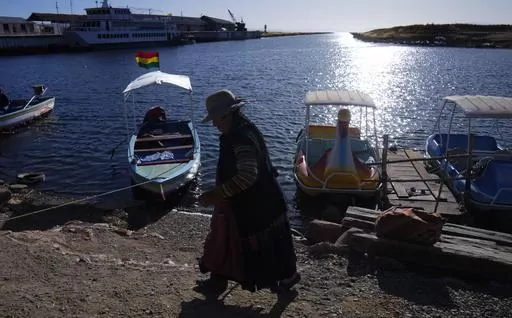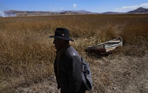 HUARINA, Bolivia (AP) — A 70-year-old man's feet sink into the soil as he passes abandoned boats where there used to be the water of Lake Titicaca. The highest navigable lake in the world has receded to what Bolivian authorities say are critically low levels due to a persistent drought.
