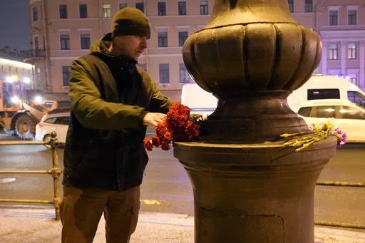 Russian officials said Vladlen Tatarsky was killed as he was leading a discussion at the cafe on the bank of the Neva River in the historic heart of St. Petersburg. Some 30 people were wounded in the blast, Russia's Health Ministry reported.