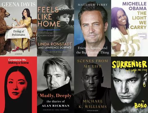 Celebrity books include Bono's "Surrender," Matthew Perry's “Friends, Lovers, and the Big Terrible Thing" and Geena Davis' “Dying of Politeness.” Bob Dylan reflects upon an art form he helped reinvent in “The Philosophy of Modern Song," while the title of Jan Wenner's memoir invokes the Dylan classic that helped inspire the name of the magazine he founded, “Like a Rolling Stone.”