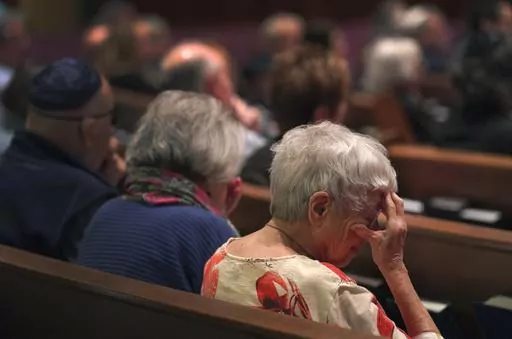 The rabbi paused at times, overcome with emotion. Worshippers wiped their eyes.