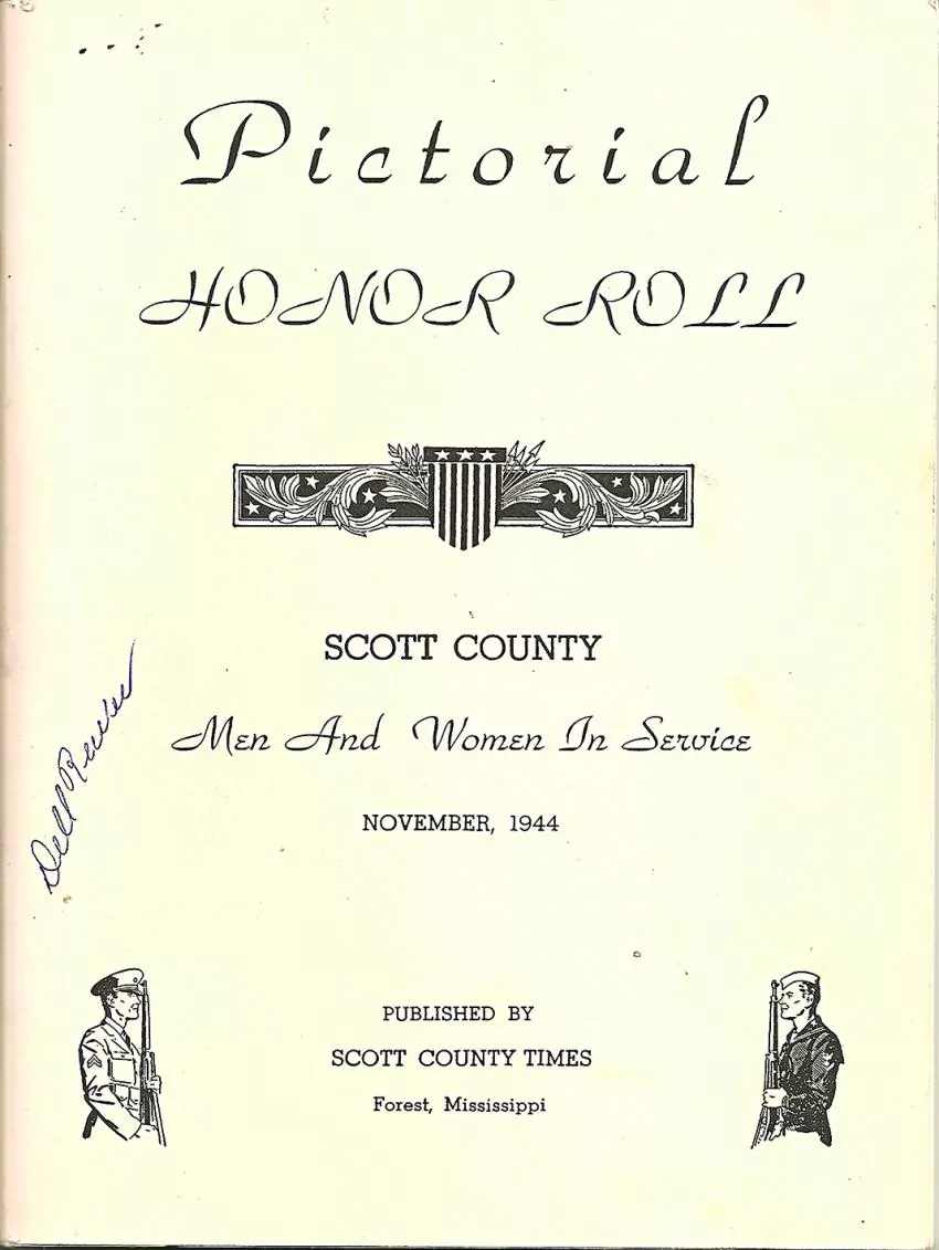 A pictorial history book of sorts will soon be available for viewing at the Forest Public Library. Pictorial Honor Roll, Scott County, Men and Women in Service, is a 1944 publication of The Scott County Times and is being donated to the library by Dell Reeves.