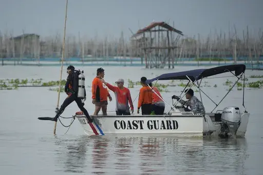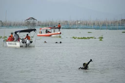 A video released by the coast guard showed rescuers on a local government boat pulling a body out of the lake. Another video showed local fishermen aboard vessels approaching the overturned boat.