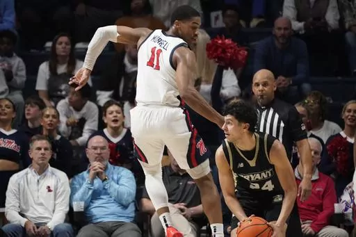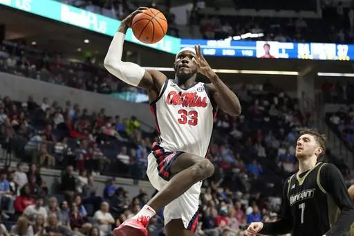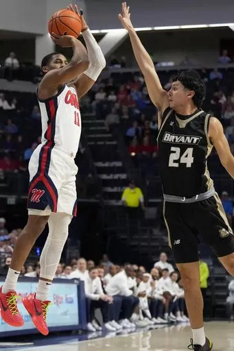 The Rebels trailed 7-6 early before scoring 13 consecutive points over a 2:36 stretch to take control. Bryant didn't get within single digits again. Doug Edert and Gross-Bullocks hit back-to-back 3s to cut it to 70-60 with 7:38 left, but the Bulldogs couldn't muster a real threat.