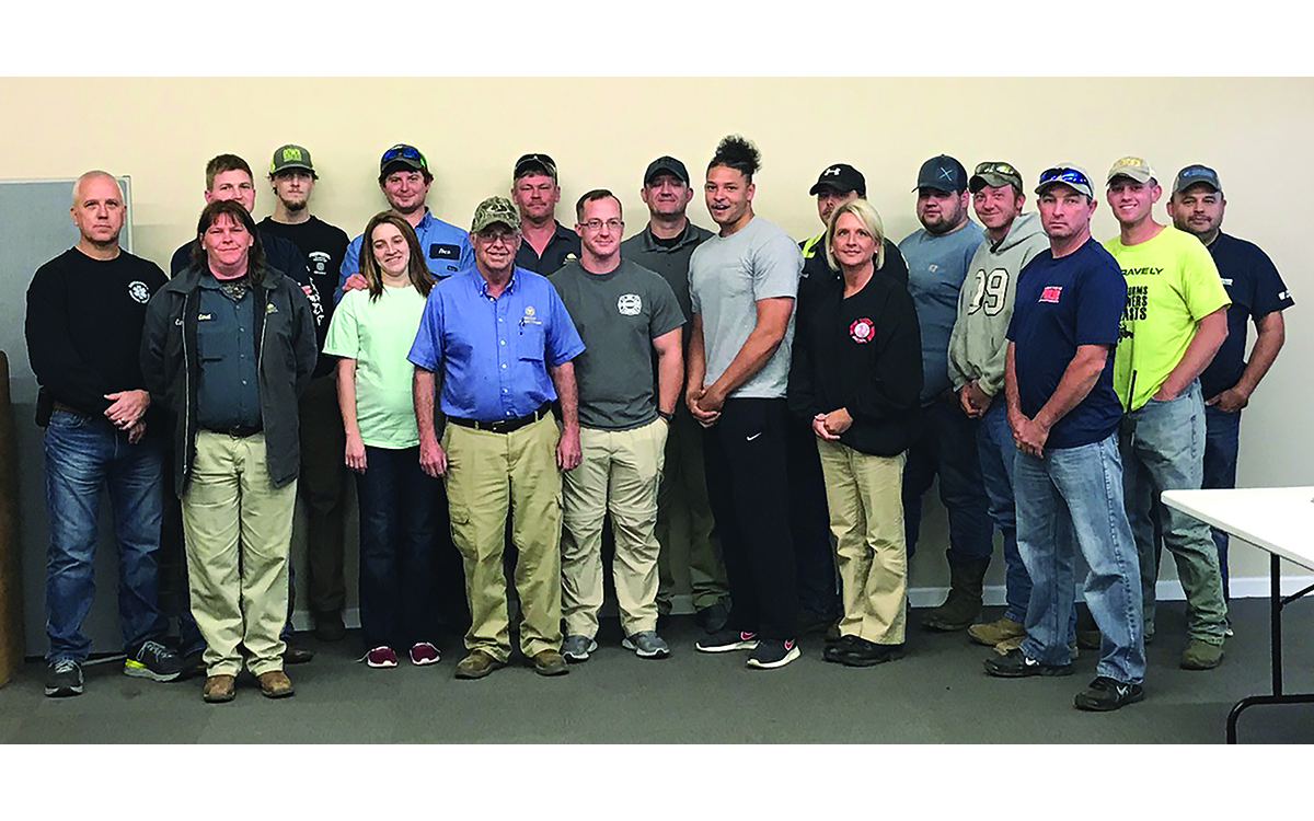 Fire Department members from Forest, Lake, Morton and Sebastopol recently completed a 6-week Emergency Medical Responder course through East Central Community College Workforce Development. The EMR course was hosted by Scott County Emergency Management. Course participants pictured above include Dale Yates, Instructor; Carol Pogue, Kaleb Rice, Cody Devoter, Kayla Kittrell, Jason Kittrell, Wallace Pogue, Jeffery Bradford, Brian Warren, Kenny Stevens, Taylor McCoy, Greg McMillan, Tabatha Gainey, Derrick Jones, Cody Jackson, Donnie Meeks, Caleb Bradford and Baron Gilmore. Not pictured: Shawn Davis, Mikel Snow, Marco Patrick.