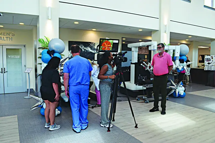 “The future of healthcare is here,” is what the poster on the wall at Lackey Memorial Hospital’s Medical Arts Complex read Tuesday where the facility’s new da Vinci 5 robotic surgical platform was being demonstrated for the public.