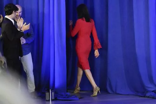 WASHINGTON (AP) — A woman ascends toward the heights of American politics, with the nation's top elected office — the presidency — looming far out of reach. A man at the bottom predicts, unhelpfully: “You'll never make it, sister!”