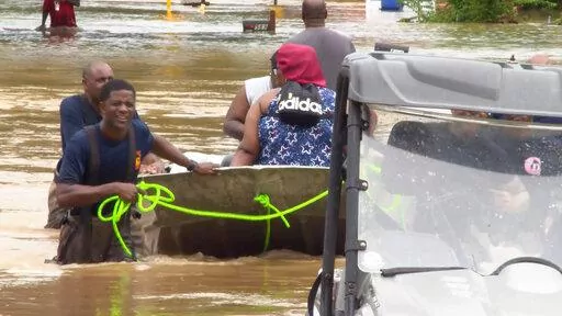 WLBT-TV reported fire department crews used boats to get people out of homes in Canton, about 26 miles (42 kilometers) north of Jackson.