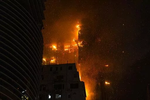 When firefighters arrived at the scene Thursday night, flames were seen on multiple floors of the building but only temporary firefighting equipment was available, Keung said.