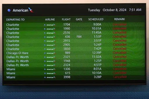 NEW YORK (AP) — Thousands of flights in and out of the U.S. have been canceled this week as Hurricane Milton barreled into the Gulf of Mexico and plowed across Florida — causing many airports in the storm's path to close their doors.