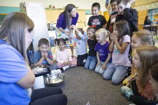 AMERICAN FALLS, Idaho (AP) — After reading a book about the five senses to a semicircle of rapt 4-year-olds, Abi Hawker tells the children in her afternoon preschool class that she has a surprise for them.