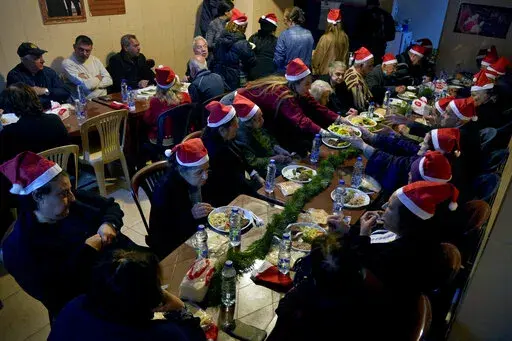 Behind closed doors, it's a different story. At a recent community Christmas dinner for elderly residents, attendees wearing Santa hats danced the dabke to popular Palestinian songs like “Raise the Keffiyeh,” twirling the traditional Palestinian scarves, or using napkins to simulate them. A speaker who toasted his hope of celebrating next year’s Christmas in Jerusalem in a “free Palestine” prompted ululations.
