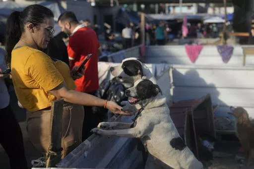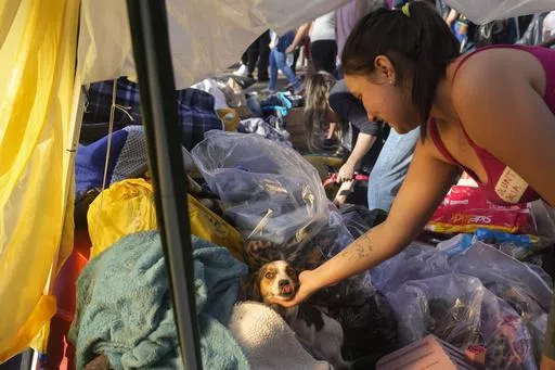 CANOAS, Brazil (AP) — Hundreds of volunteers have set up a makeshift dog shelter in an abandoned, roofless warehouse in the city of Canoas, one of the hardest hit by floods in southern Brazil's Rio Grande do Sul state.
