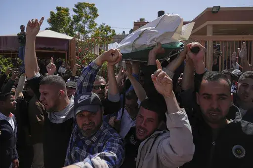 DEIR AL-BALAH, Gaza Strip (AP) — Palestinians held funerals Monday for 15 medics and emergency responders killed by Israeli troops in southern Gaza, after their bodies and mangled ambulances were found buried in an impromptu mass grave, apparently plowed over by Israeli military bulldozers.