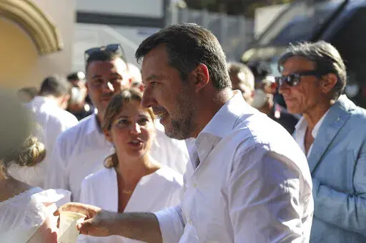 Salvini is pledging a return to his tough-on-immigration policies should the right-wing coalition win the Sept. 25 parliamentary vote. The early elections were forced after his right-wing anti-migrant League party, along with two other parties, yanked their support for outgoing Premier Mario Draghi’s 17-month-old pandemic unity government.