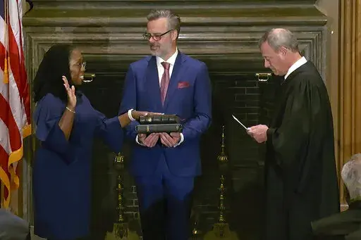 WASHINGTON (AP) — Ketanji Brown Jackson was sworn in to the Supreme Court on Thursday, shattering a glass ceiling as the first Black woman on the nation’s highest court.