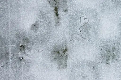 Some, like the young people performing a street dance in a Rio de Janeiro favela, or slum, show that exuberance knows no boundaries and will inevitably poke through. And some show the literal joyful footprints of humanity — as with the footprints on a snow-covered rugby field in Chile that took pains to walk in the shape of a heart.