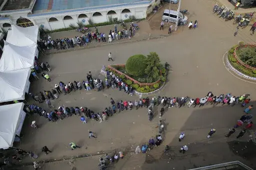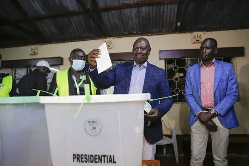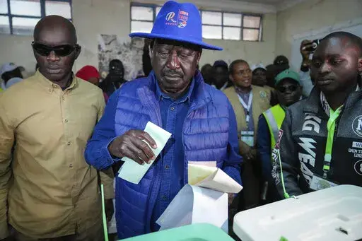 NAIROBI, Kenya (AP) — Fewer Kenyans voted Tuesday in an unusual presidential election where a longtime opposition leader who is backed by the outgoing president faces the brash deputy president who styles himself as the outsider. Turnout was just 56% an hour before polls closed as some voters cited little hope of real change.