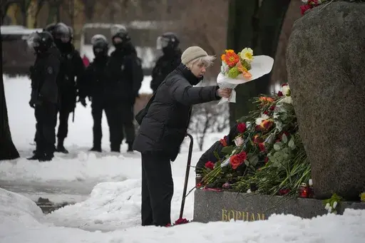 Meanwhile, arrests continued Saturday as Russians came to lay flowers in memory of Navalny at memorials to the victims of Soviet-era purges. OVD-Info, a group that monitors political repression in Russia, said Saturday that more than 273 people had been detained at memorial events since Navalny's death.