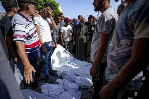 Early Thursday an Israeli strike hit a house in central Gaza, killing at least six people, while another strike later hit a car, killing at least three. The dead were taken to the Aqsa Martyrs Hospital, where an Associated Press journalist counted the bodies.