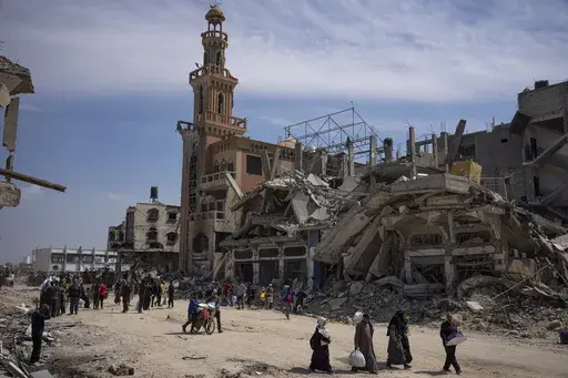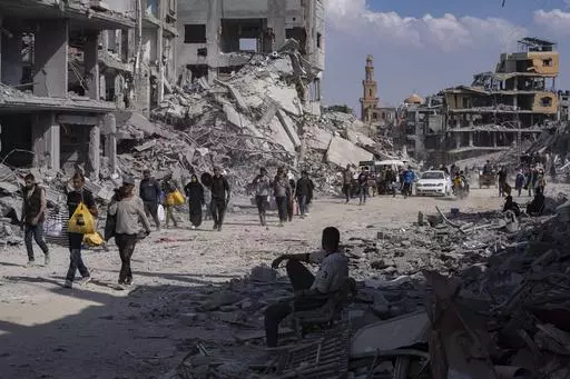 AP video in Khan Younis showed some people returning to a landscape marked by shattered multistory buildings and climbing over debris. Cars were overturned and charred. Southern Gaza’s main hospital, Nasser, was in shambles.