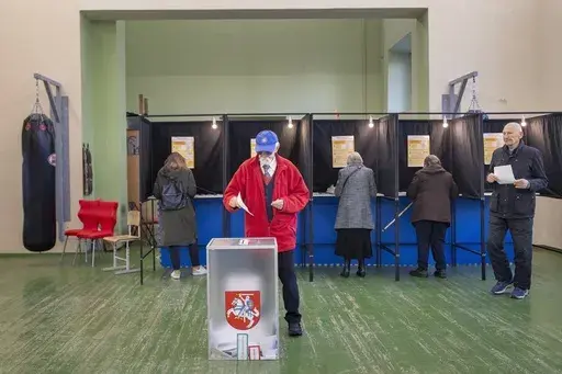 About 2.4 million people are eligible to elect 141 members of the parliament, or Seimas, for a four-year term in two rounds. On Sunday, 70 lawmakers will be elected by party lists, joined by those in single-mandate constituencies who manage to win more than 50% of votes. The runoff is Oct. 27, when the majority of single-member constituencies will vote to choose between the two leading candidates.