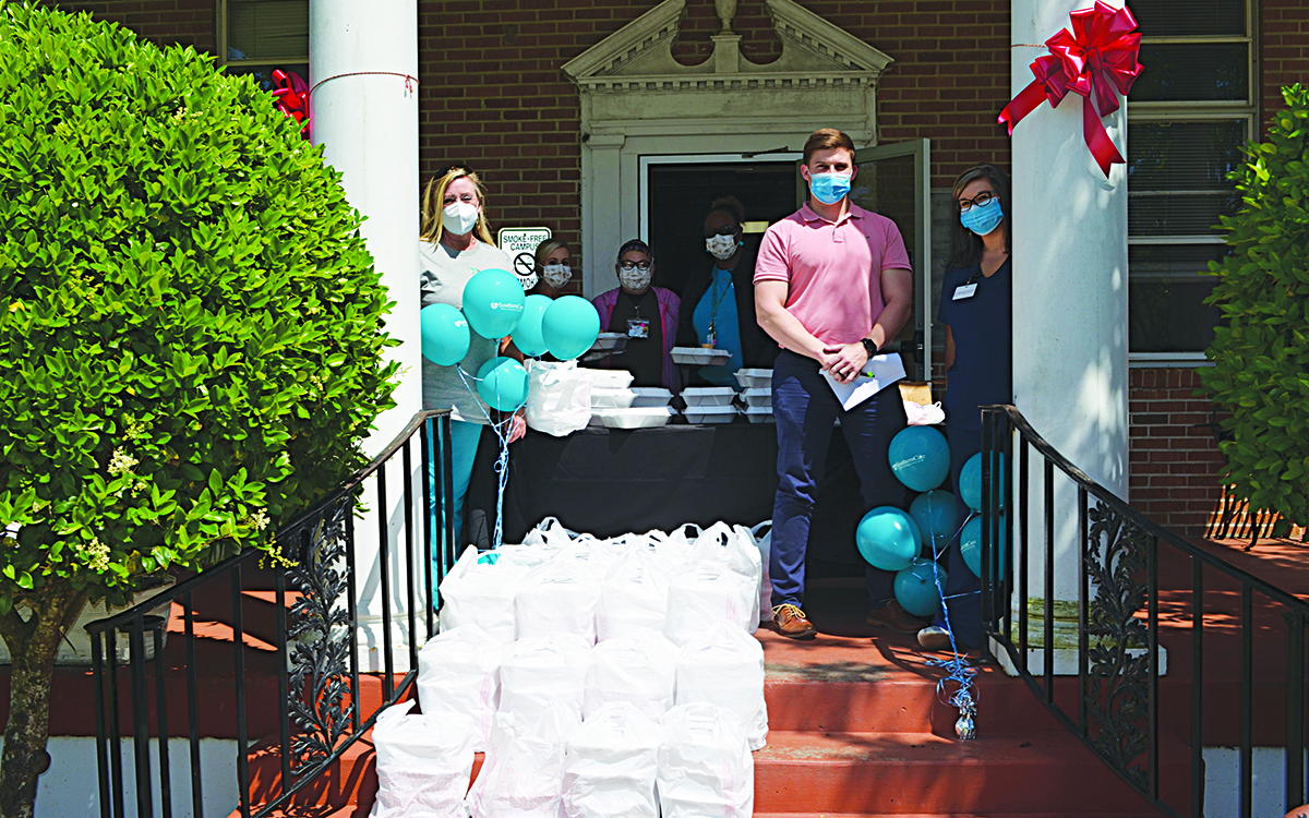 Pictured, Members of the SouthernCare Hospice team served meals to healthcare workers at Lackey Memorial Hospital last Wednesday in a show of support.