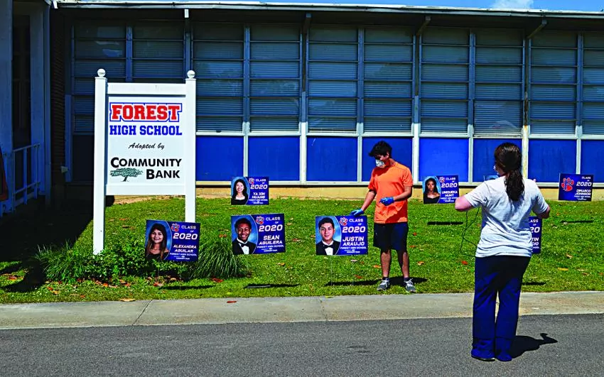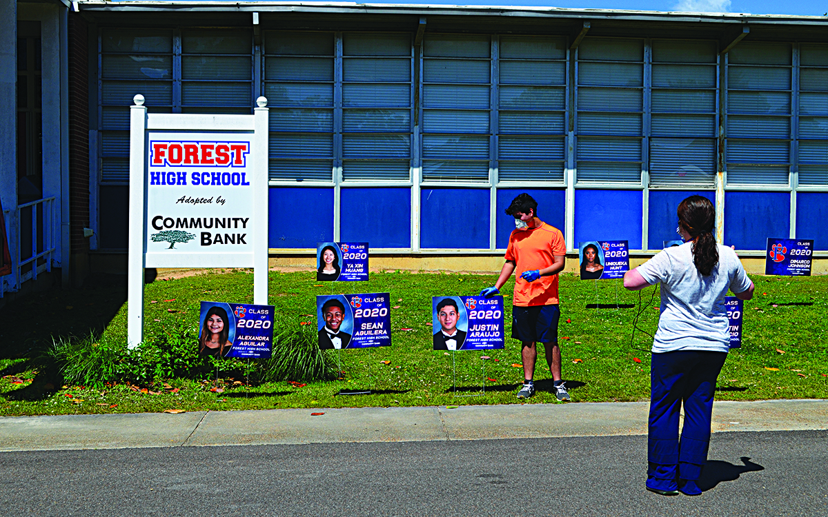 At Forest High School seniors were lined up in front of the school last week, in the form of yard signs anyway, as their live counterparts drove by to snag their likeness. The yard signs are just one more effort by Forest and Scott County schools to add a little something special for graduating seniors in a time of uncertainty due to the COVID-19 pandemic.