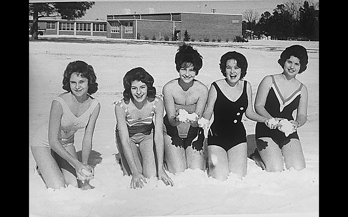 In 1958 Snow Bunnies were Linda Lackey Shelton, Carol Johnston Lindley, Lyllian Lee McMullan and Betty Ormond. And in 1963 the Bunnies pictured above were Nancy Dearman, Sarah Lee, Gelaine McDaniel, Ruth Ellen Ezelle, and Kaye Crosby.