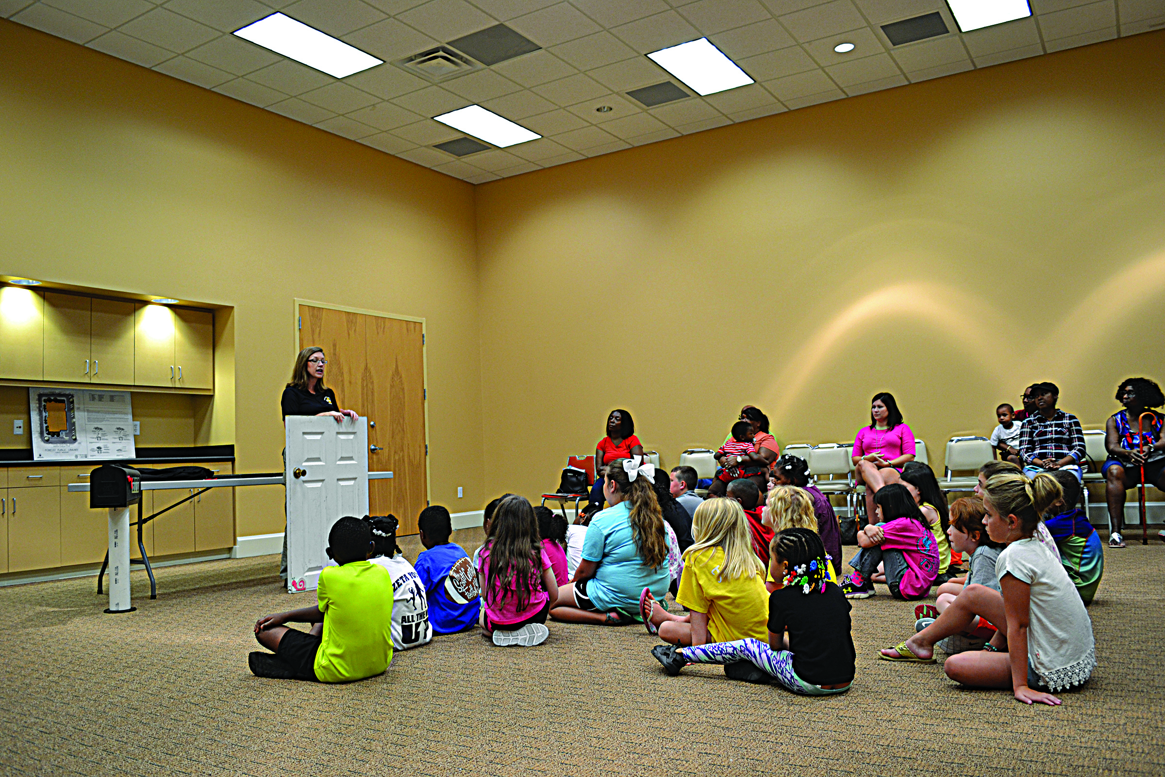 Peavy spoke to the children and attending parents about recognizing fire and smoke in the house, smoke alarm placement and maintenance, avoiding smoke by getting low on the floor, identifying two exits in the house in case of fire, and establishing a meeting location for the family outside of the house.