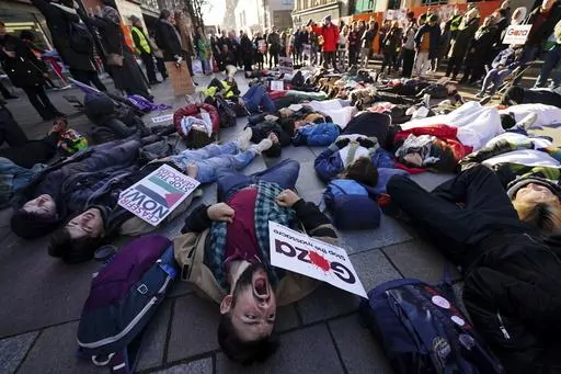 Twist said the march was the largest in London since the start of the conflict. Police estimated that some 300,000 people took part, snaking their way through the city from Hyde Park to the U.S. Embassy about 3 miles (5 kilometers) away.