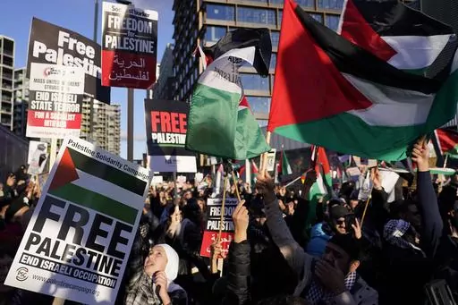 Marchers carried signs accusing Israel of genocide in Gaza and chanted “from the river to the sea, Palestine will be free.’’ While Palestinian supporters say the chant is a call for freedom for everyone living in the area between the River Jordan and the Mediterranean, many Jews see it as a call for the destruction of Israel.