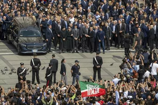 MILAN (AP) — Italy’s political, business and soccer elite bade farewell to former Premier Silvio Berlusconi with a state funeral inside Milan’s imposing Duomo cathedral on Wednesday, while thousands of ordinary admirers and soccer fans waved banners and chanted in the piazza outside.