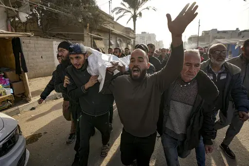 QAMISHLI, Syria — Thousands of people in northeastern Syria attended a funeral Thursday for six fighters from a Kurdish-led, U.S.-backed force who were killed in ongoing clashes with Turkish-backed militias.