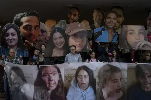 TEL AVIV, Israel — An Israeli group representing some families of hostages held in Gaza displayed an image of U.S. President-elect Donald Trump on a huge electronic billboard in Tel Aviv with a reference to his threat to unleash “hell” if the captives aren't freed before he takes office later this month.
